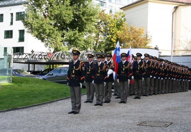 Slávnostný ceremoniál na prednom nádvorí a v priestoroch Grasalkovičovho paláca zabezpečili na vysokej profesionálnej úrovni príslušníci Čestnej stráže prezidenta SR pod velením zástupcu veliteľa Čestnej stráže prezidenta SR podplukovníka Jána Krajčoviča.